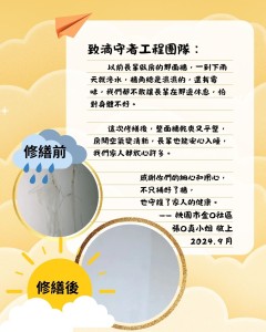心入睡,我們家人都放心許多。感謝你們的細心和用心,不只補好了牆,也守護了家人的健康。」